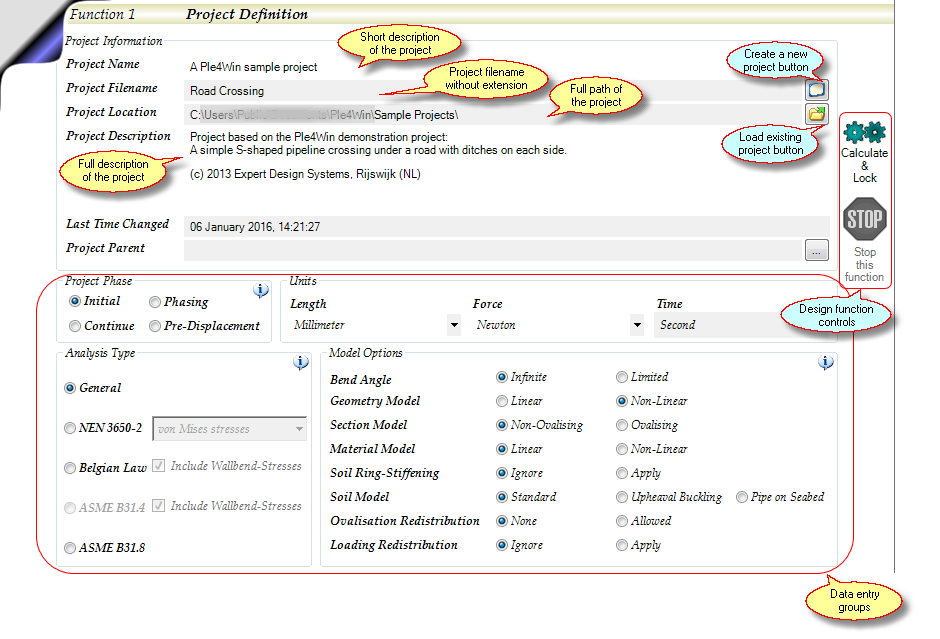 Design function 1 is used to define the basic setup of the pipeline project. It differs from all subsequent functions in several ways: